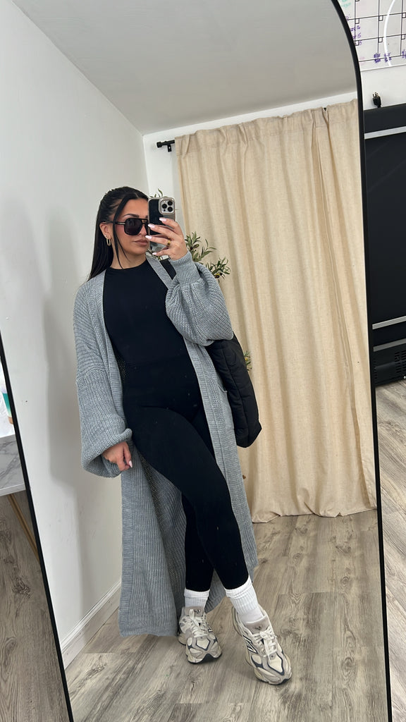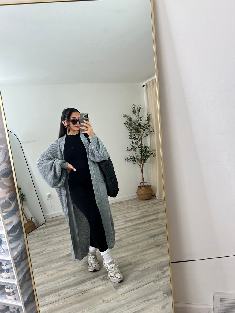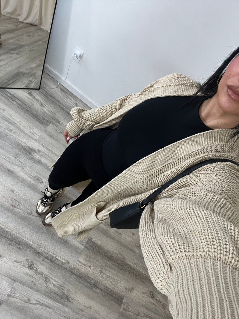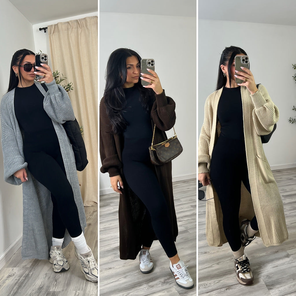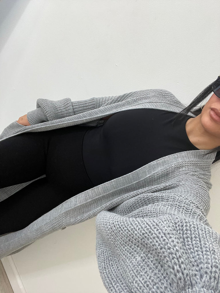 Long, open style cardigan